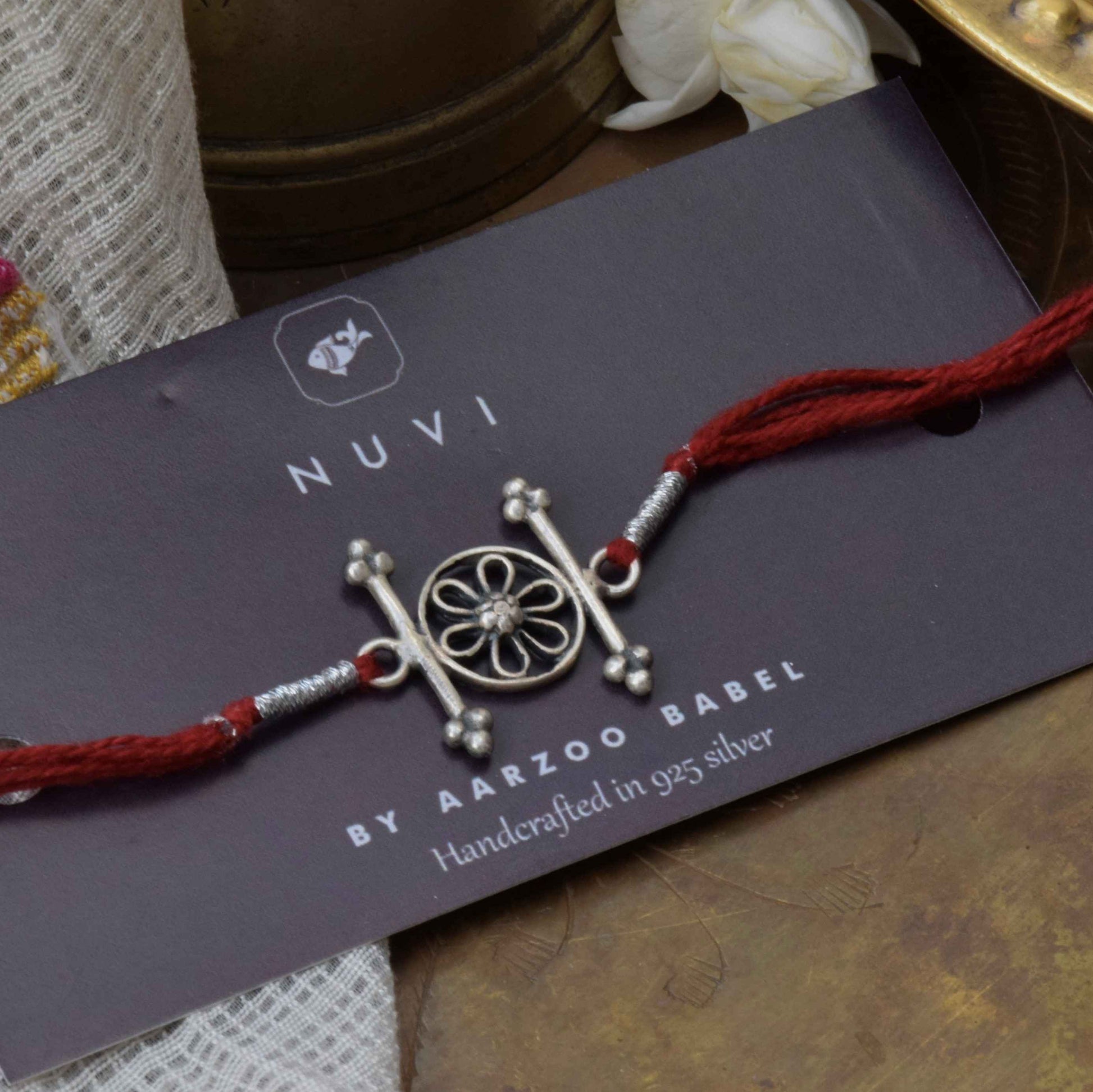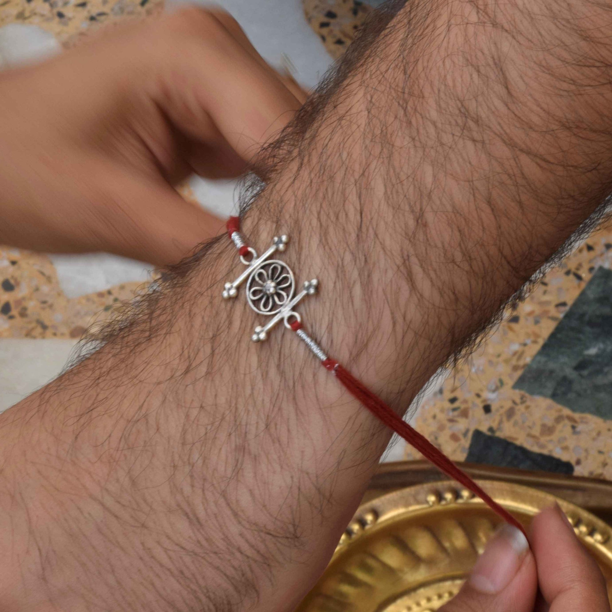 Celebrate the essence of Raksha Bandhan with our beautiful 92.5 silver rakhi. Each rakhi is crafted with sterling silver and cotton thread.