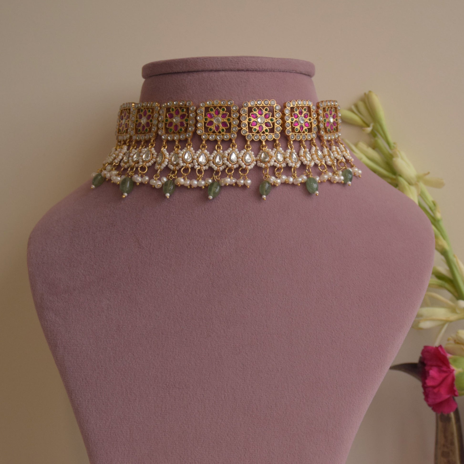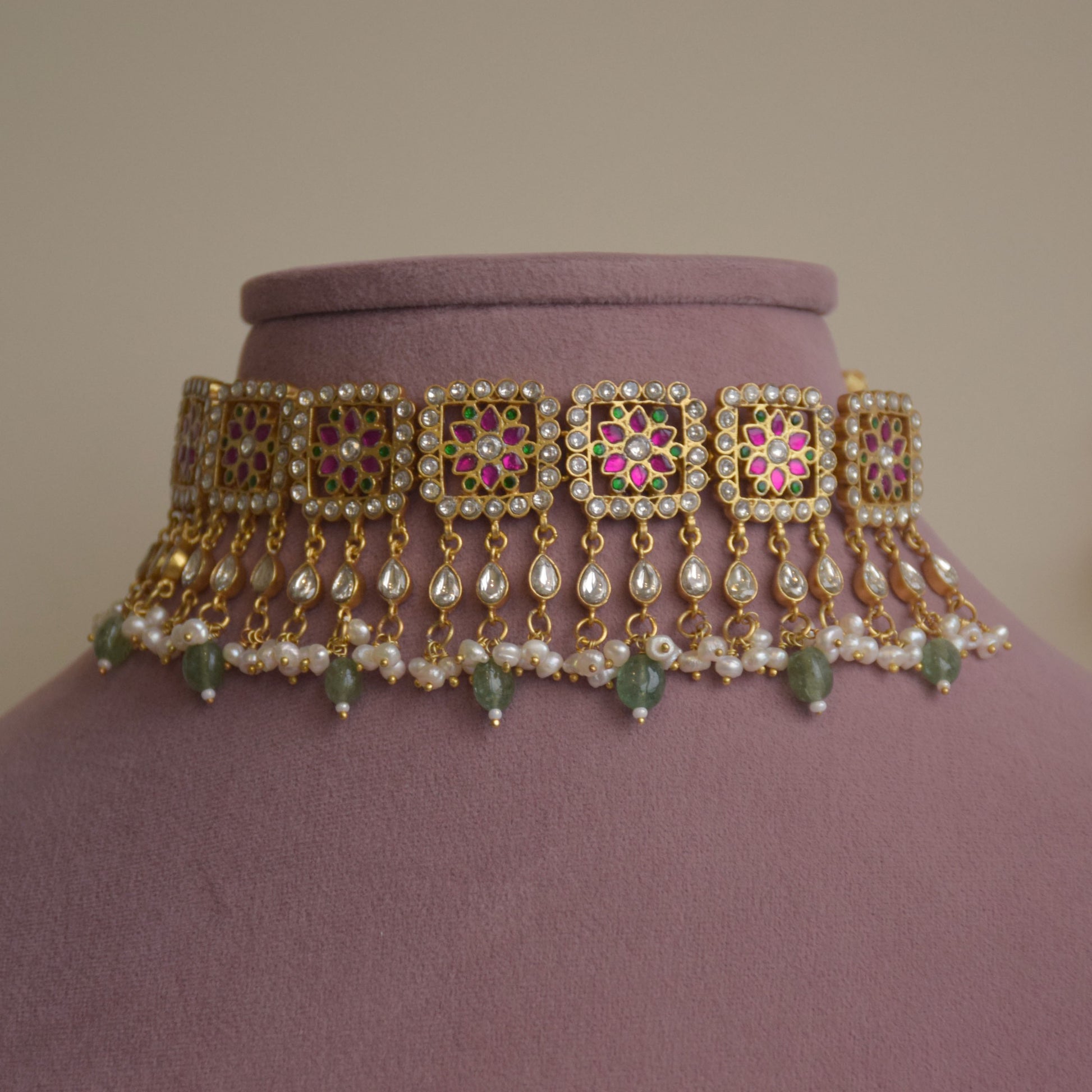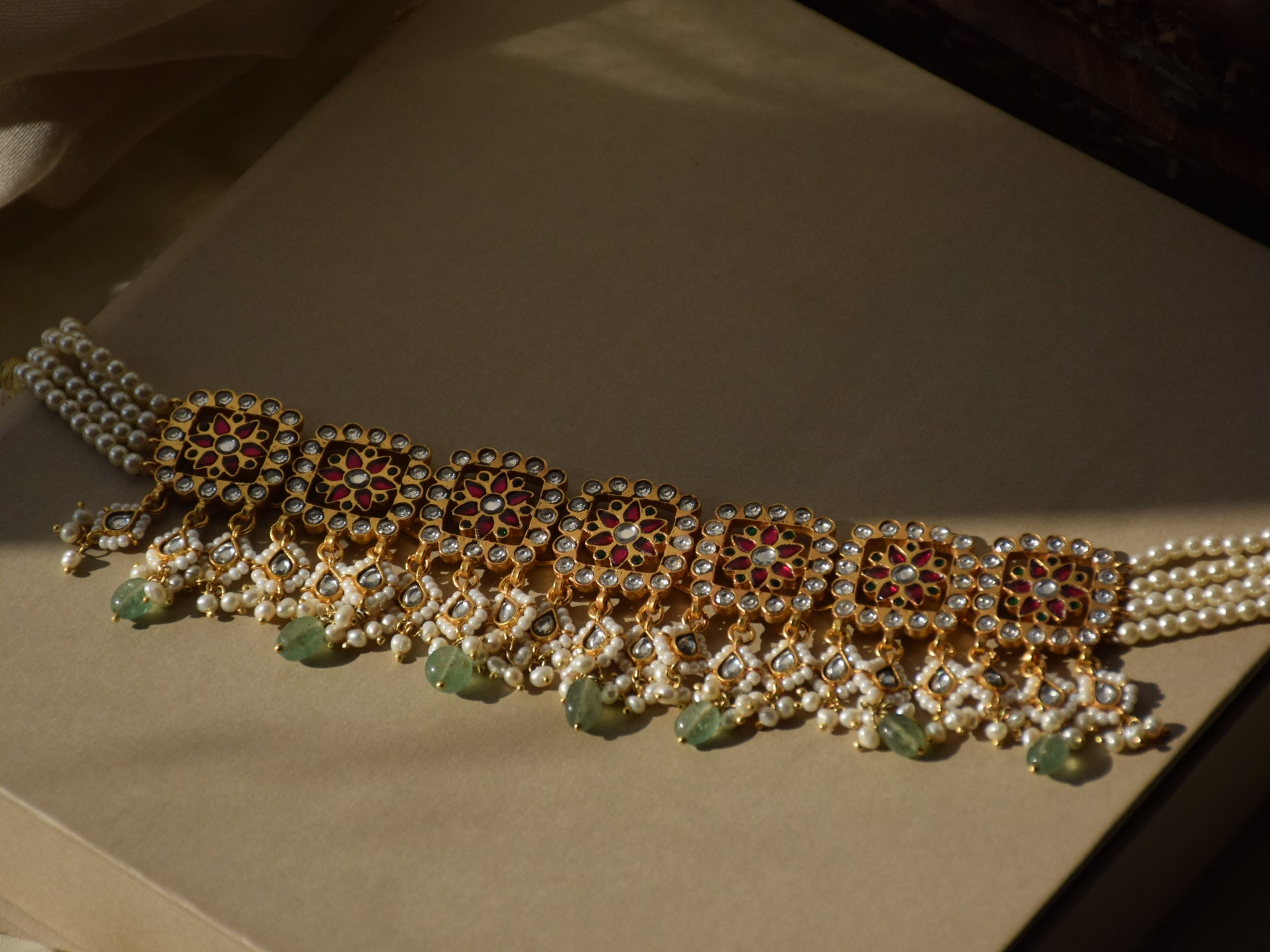 Embrace the regal aura with our "Gulmohar Necklace," meticulously handcrafted in 925 silver. Adorned with multicolored stones done in traditional Jadau work and its intricate design pays homage to a bygone era while ensuring modern wearability. Elevate your style with this timeless masterpiece, exuding opulence and grace.