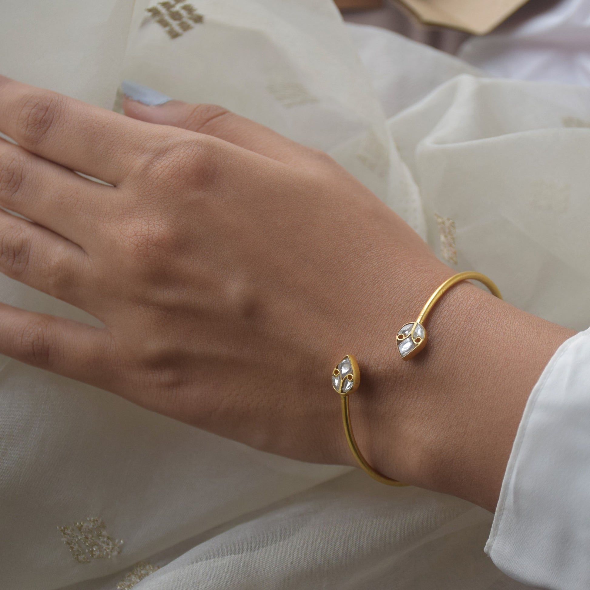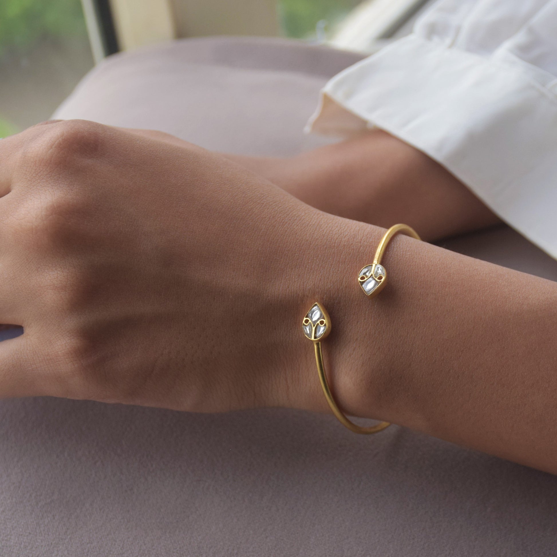 Elevate your style with our gold-plated 92.5 silver adjustable Kali bangle, adorned with two dainty motifs. This versatile piece beautifully complements both your Western and Indian clothing, seamlessly enhancing your overall look.