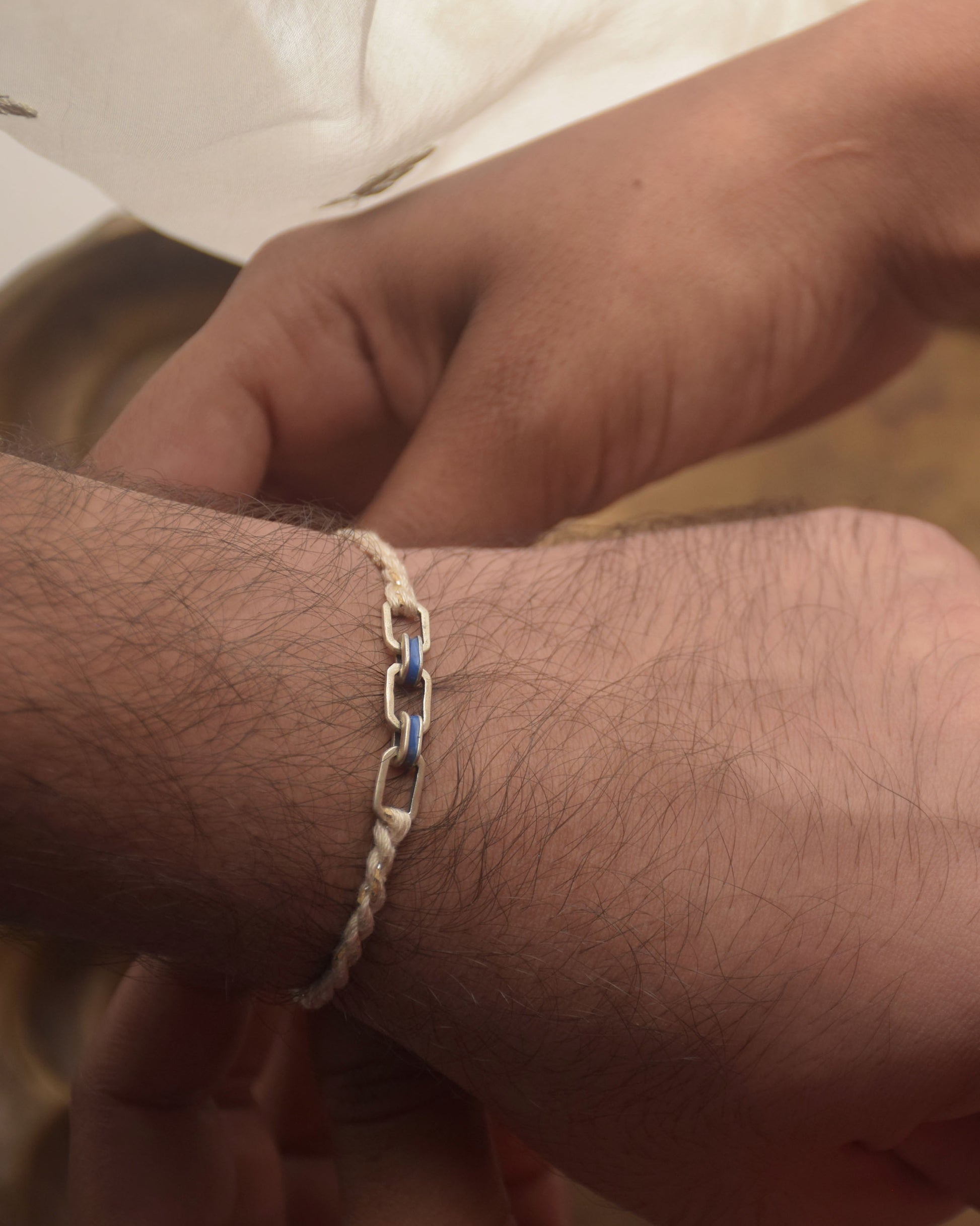 Celebrate the enduring bond of Raksha Bandhan with our stunning 92.5 silver Rakhi designs with beige cotton thread.