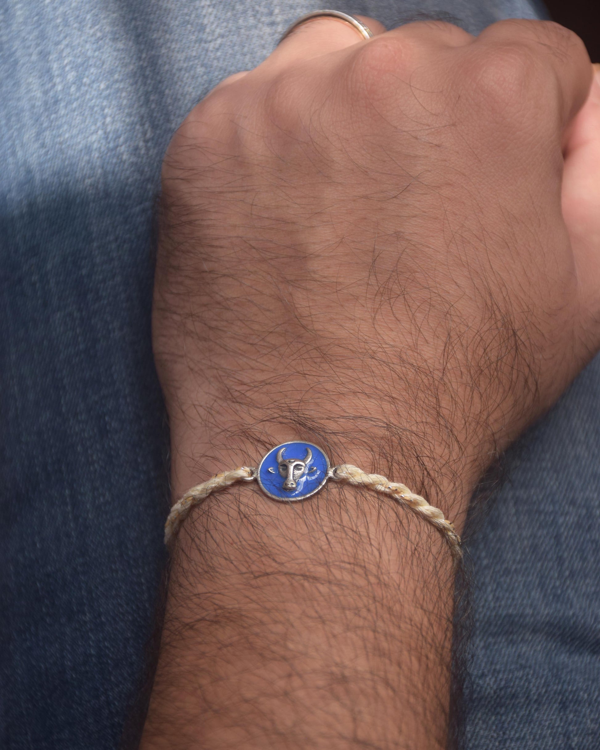 Nandi Rakhi with Blue Enamel | 92.5 Sterling Silver