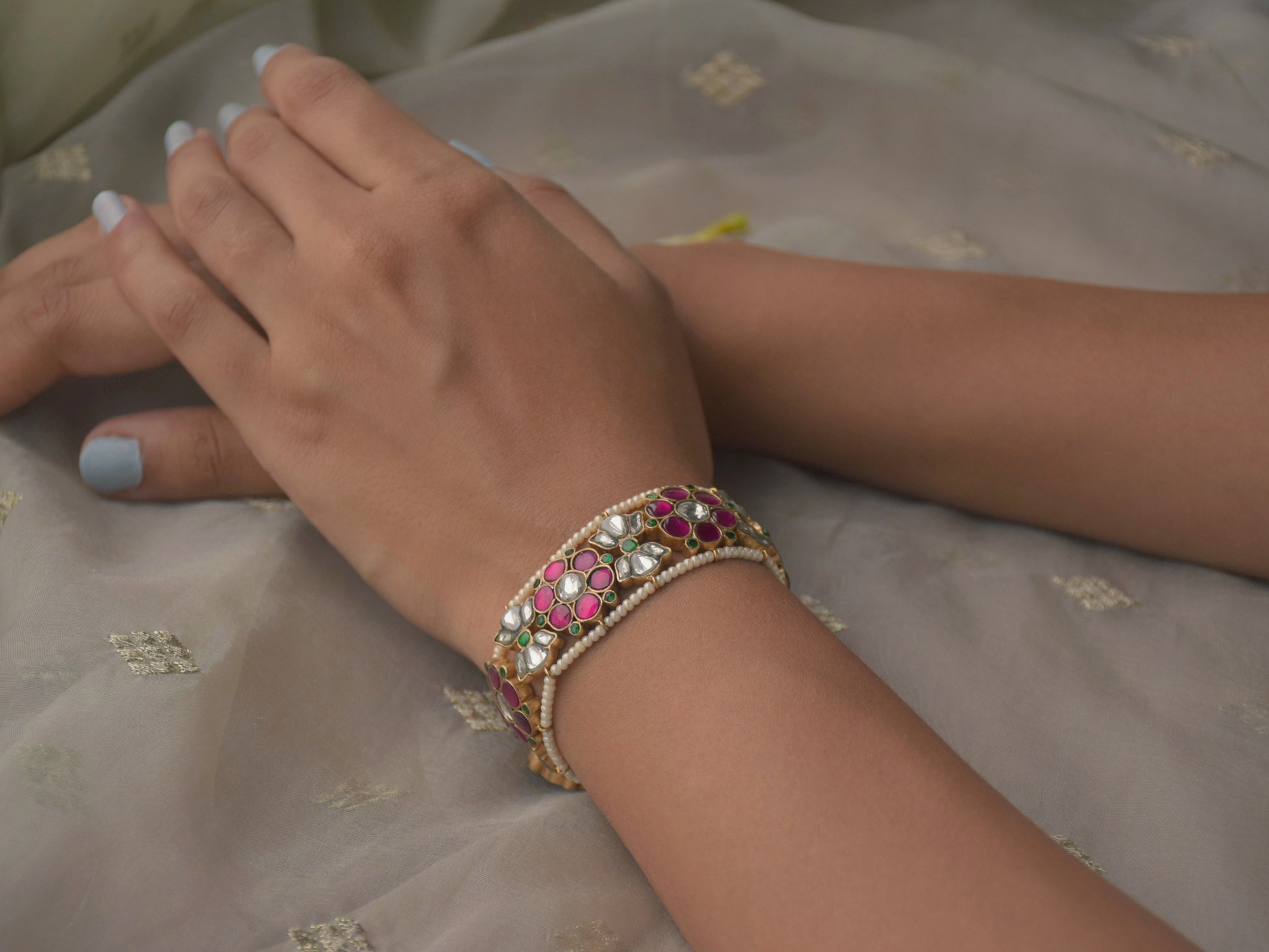 The Paheli bracelet crafted in 925 silver is the perfect wedding accessory, a timeless jewel meant to be cherished forever. Its exquisite design embodies the essence of love and commitment, making it a true treasure for your special day and beyond.