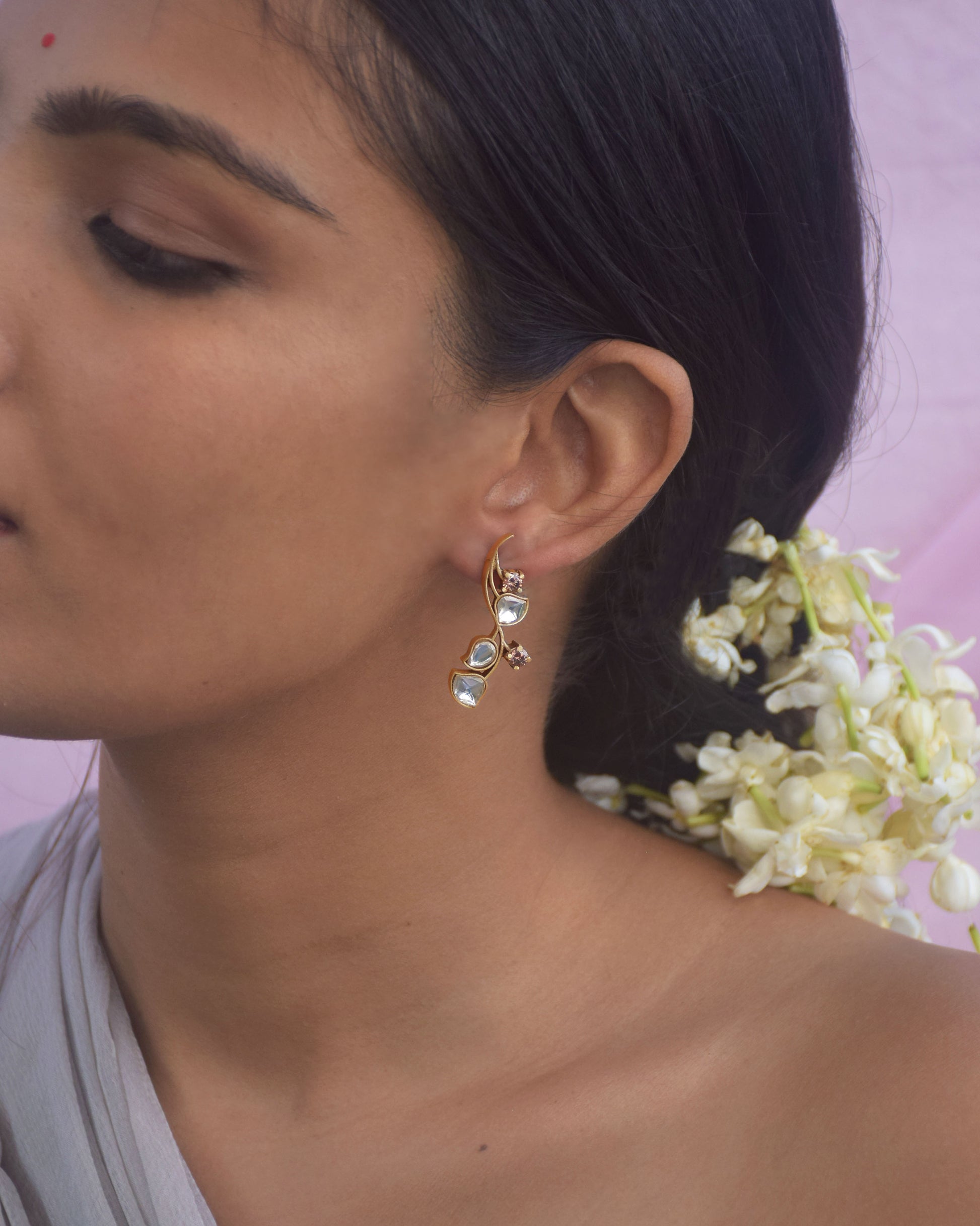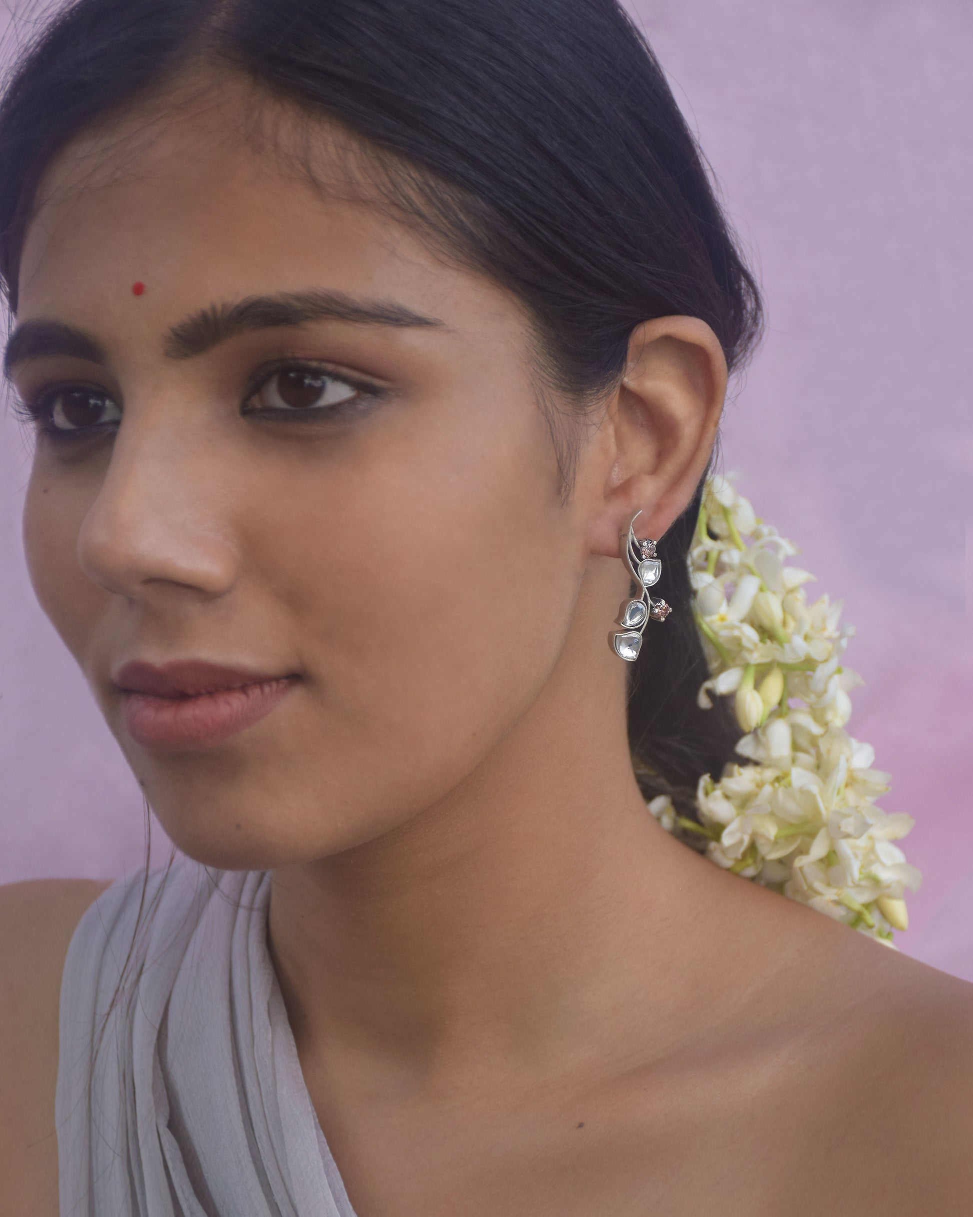 The enchanting Rohini earrings, lovingly crafted in 92.5 silver, are a true testament to artistry and passion. Each delicate motif dances like a soft veil of blooming flowers, gracefully adorning your ears. These earrings, with their intricate craftsmanship, are not just jewelry—they are a masterpiece that will captivate hearts. Designed with such care and elegance, they are destined to be the most cherished and breathtaking piece in your collection, a reflection of timeless beauty and love.